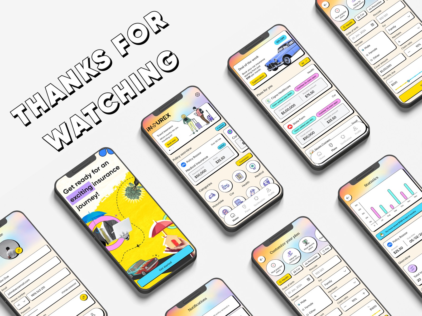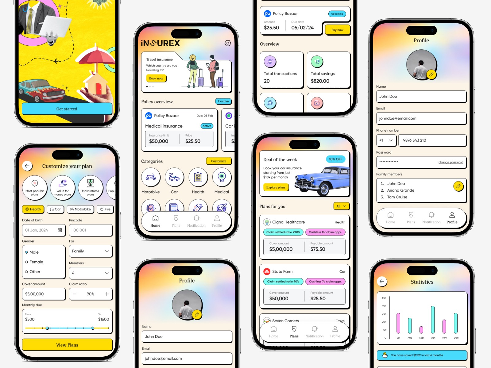 Theme: I decided to go with Neo-Brutalism Design, not a single insurance app is designed in this theme. So it was fin to design something unique