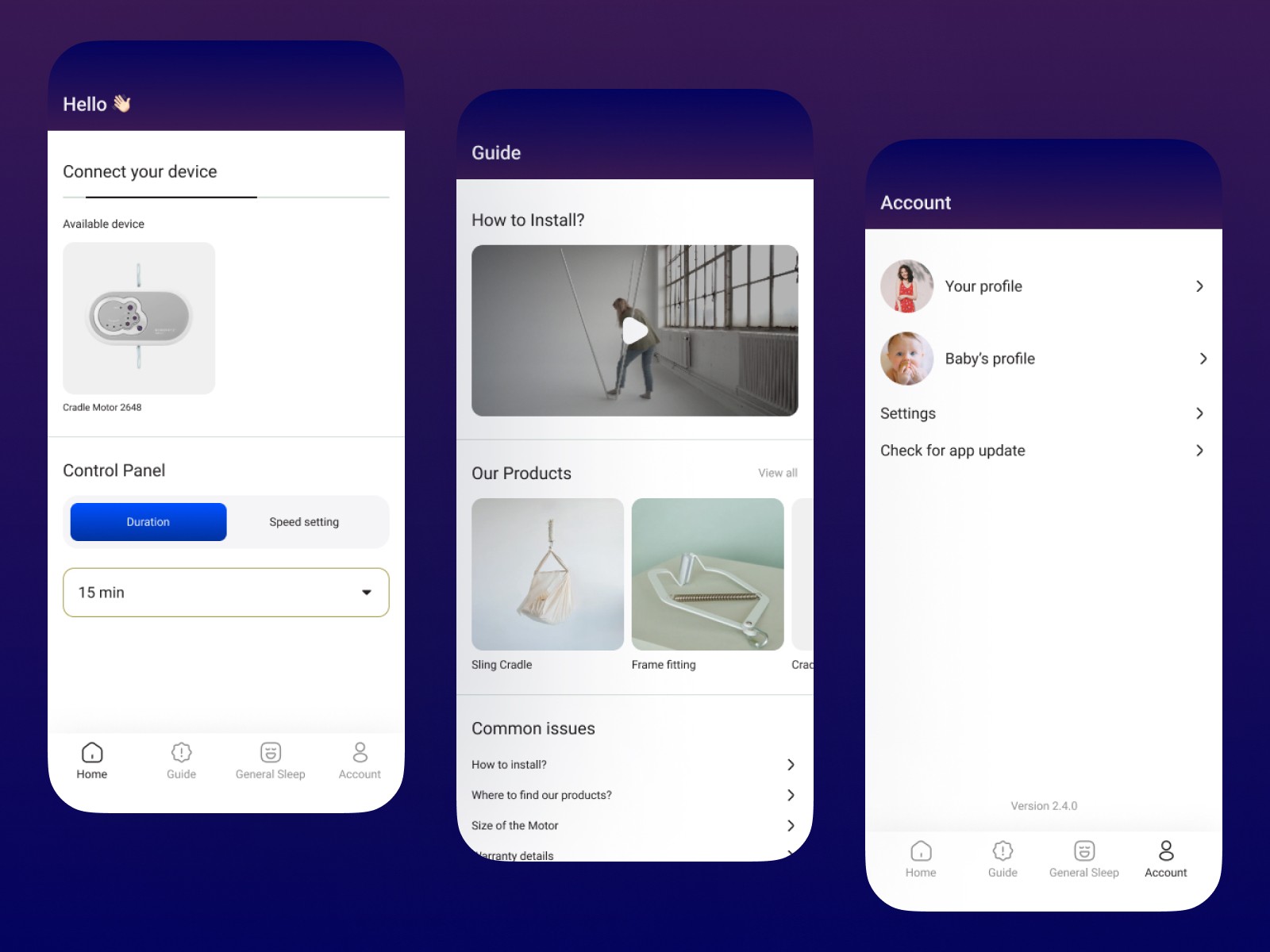 Real-time visual feedback: Display the cradle's current state (swinging, paused, etc.) and speed or progress bars on the app screen.